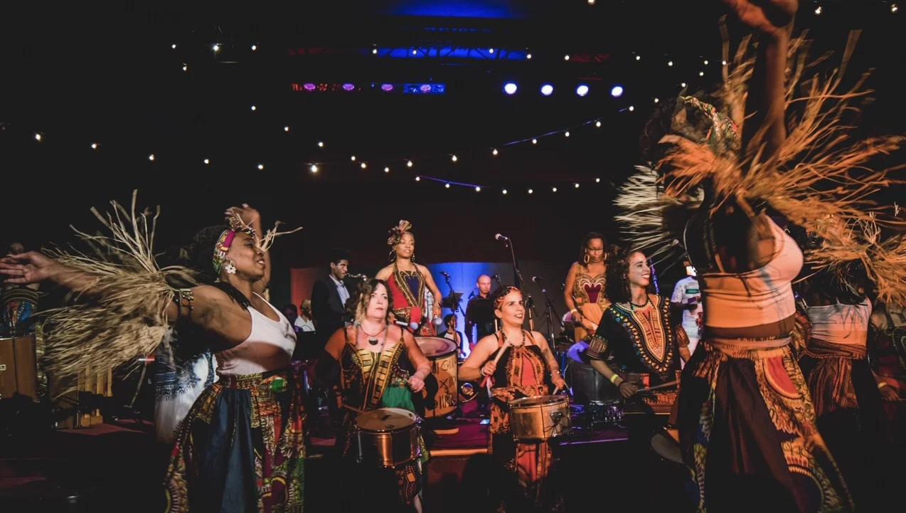 Extra-Ancestral founded by Kahlil Cummings, began in 2017 as an ensemble that aimed to educate audiences through the fusions of hypnotic Afrobeat, Reggae, Jazz, Afro-Latin, and Traditional African diasporic rhythms, narrated by powerful ancestral dancing. Extra Ancestral provides an in-depth education of temporal and geographic boarders from Africa to the Americas and back, providing lessons from the past to hone tools for the future. Extra- Ancestral uses music and dance as a healing tool led by some of LA’s most dynamic artists. These artists engage in revolutionary performances of black survival that invoke—poignantly resist—500 years of forced transatlantic passages between West Africa and the Americas. Extra- Ancestral seeks to incorporate and integrate music, dance, visual arts, and community engagement as a form of empowerment to reduce the transgenerational trauma that exists in communities of color. Historically, music and dance have been considered the oldest form of medicine, Extra-ancestral seeks to combine the tradition of healing through music using dances, rituals, and messages to elevate and empower communities of color. This vision manifests into performance productions, dance classes, workshops and music education with artists across the African Diaspora. As a result, Extra- Ancestral is composed of three branches: Performance, Music and Dance Workshops, and an all queen ensembled, Bloco Obini.
